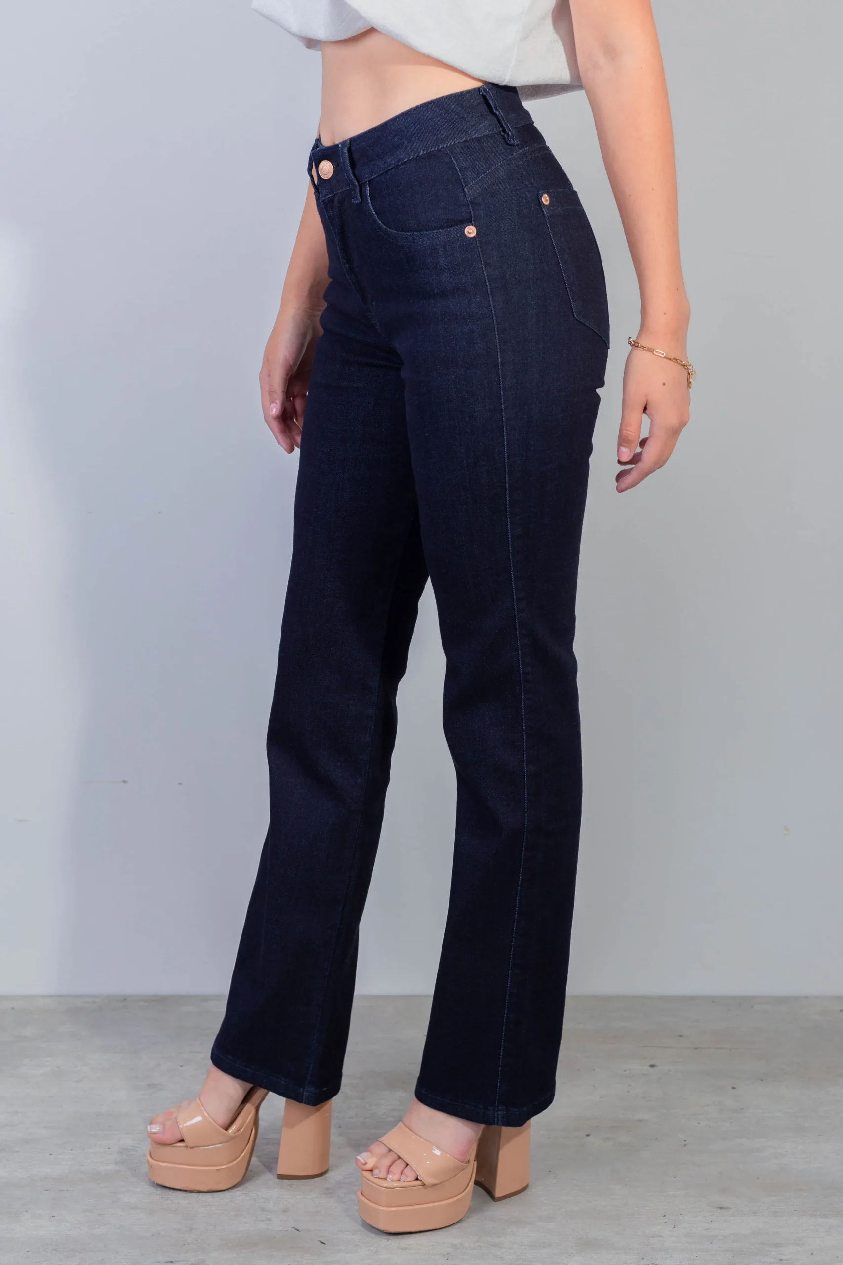 REF: 001010 Jean Recto, Stretch , tiro alto , tono Azul oscuro
